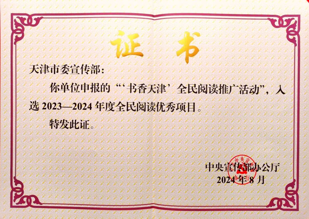 ▲由天津市委宣传部申报的“‘书香天津’全民阅读推广活动”等20个项目入2023-2024年度全民阅读优秀项目名单