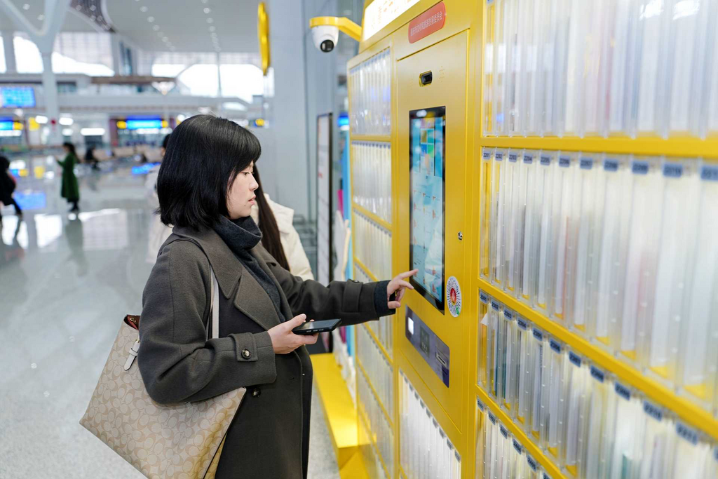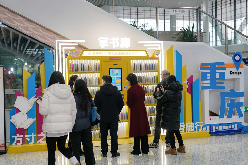 ▲高铁站内配备智能借阅设备。重庆市文化旅游委供图